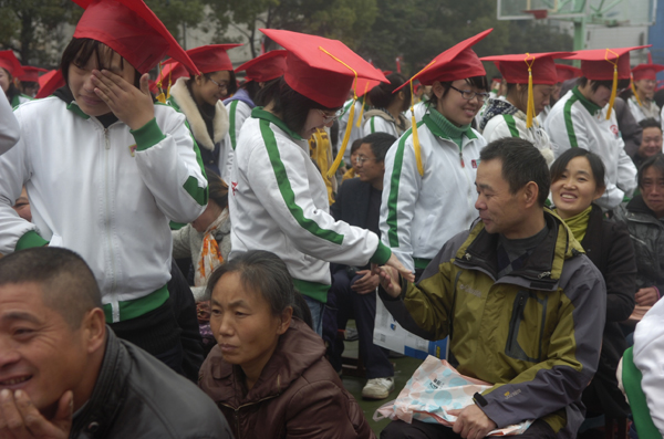 學(xué)校領(lǐng)導(dǎo)給學(xué)生發(fā)蛋糕