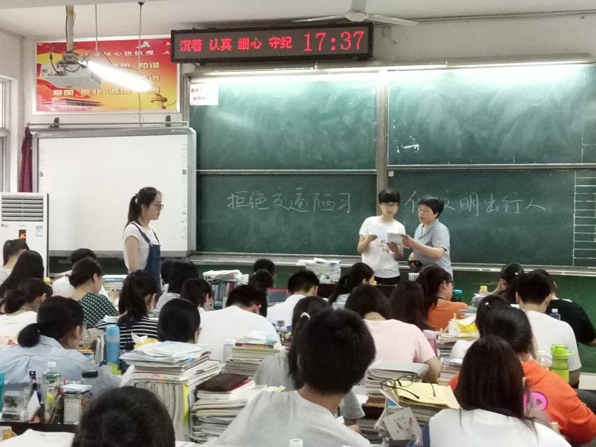 2017年5月28日下午,為了創(chuàng)建文明城市、爭(zhēng)創(chuàng)文明校園,襄陽(yáng)三中積極響應(yīng)市教育局有關(guān)倡議,統(tǒng)一召開(kāi)“拒絕交通陋習(xí) 做文明出行人”班會(huì),學(xué)習(xí)《市委書(shū)記李樂(lè)成、市長(zhǎng)秦軍致全體市民的一封信》、《市教育局對(duì)全市中小學(xué)生文明出行的倡議》和學(xué)校關(guān)于“創(chuàng)文”的布置要求。學(xué)校印發(fā)了《教育系統(tǒng)創(chuàng)文知識(shí)測(cè)試卷》,要求全校師生認(rèn)真作答,加深對(duì)“創(chuàng)文”知識(shí)的了解和加強(qiáng)文明行為的養(yǎng)成。