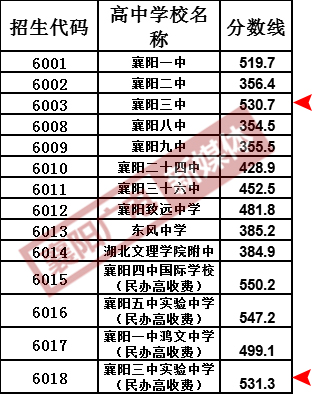 2017年襄陽市區(qū)普通高中統(tǒng)招錄取投檔分?jǐn)?shù)線