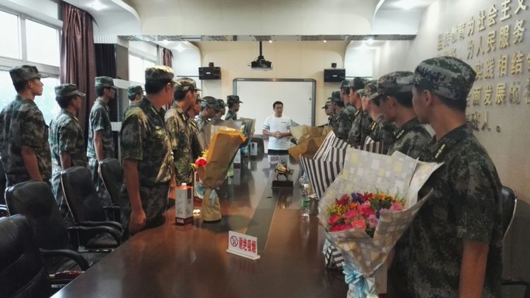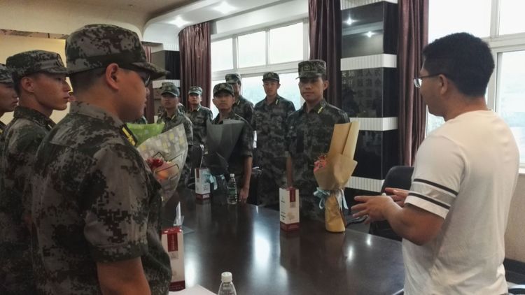 李天艷校長(zhǎng)代表學(xué)校慰問(wèn)軍訓(xùn)教官們。