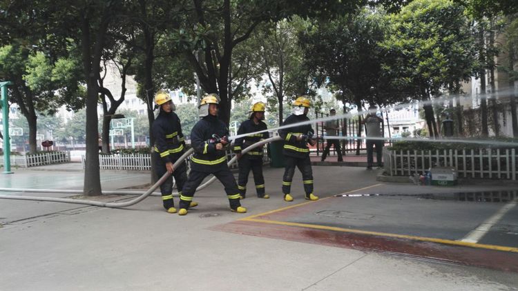 第一次這么近距離觀看消防戰(zhàn)士的示范演練。