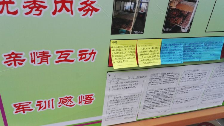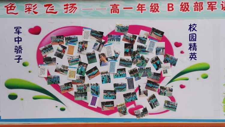 嚴(yán)明的紀(jì)律,離不開濃濃的溫情。級(jí)部的軍訓(xùn)展板成為校園里一道靚麗的風(fēng)景線。