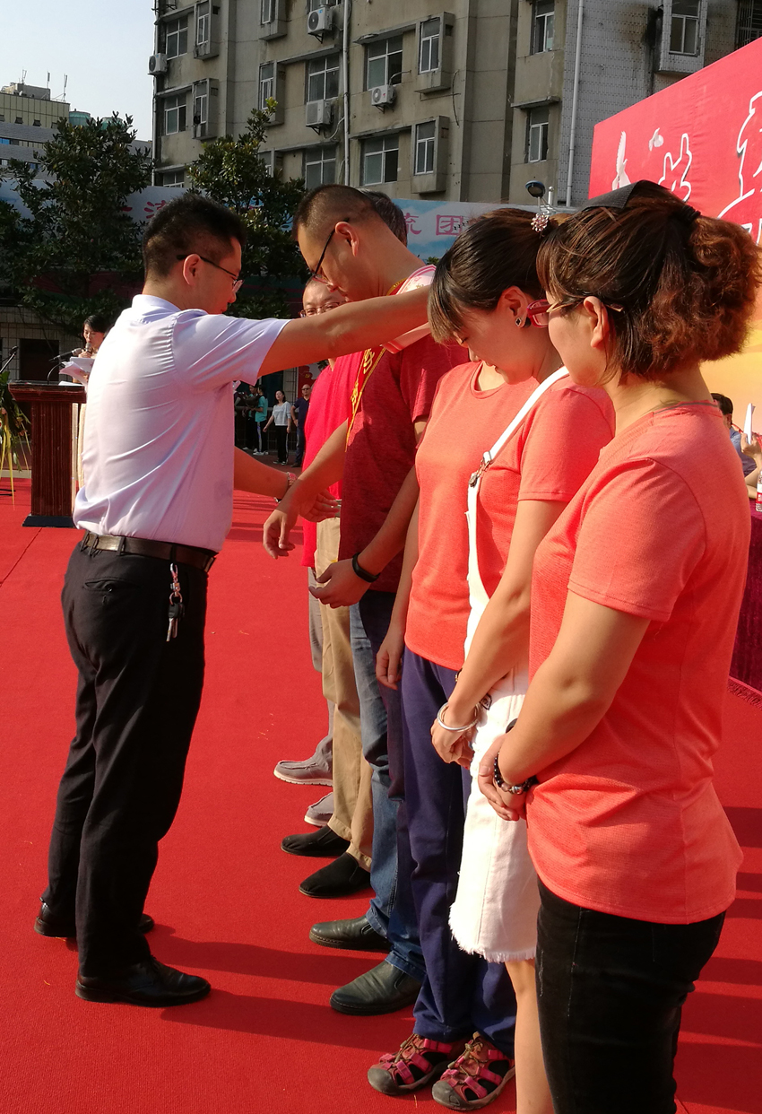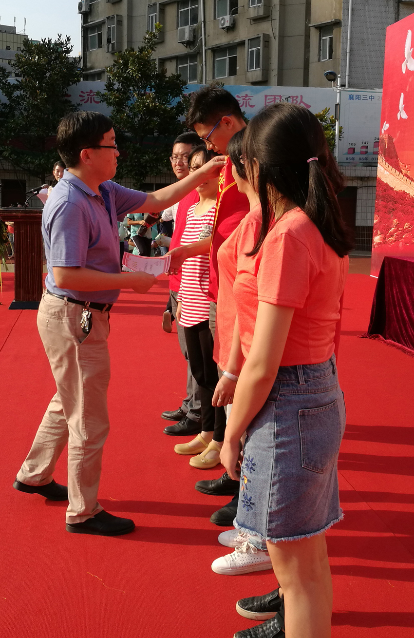 學(xué)校領(lǐng)導(dǎo)給先進(jìn)團(tuán)隊(duì)和個(gè)人佩戴綬帶,頒發(fā)獲獎(jiǎng)證書(shū)