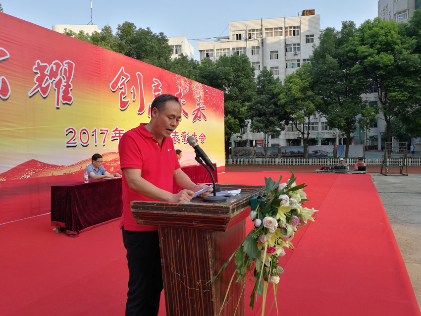在第33個(gè)教師節(jié)來(lái)臨之際,我校召開(kāi)慶祝教師節(jié)暨2016-2017學(xué)年度表彰大會(huì),重點(diǎn)表彰了2017年高考“功臣”。2017年,我校高考成績(jī)?cè)俅螌?shí)現(xiàn)歷史性的跨越,圓滿(mǎn)實(shí)現(xiàn)既定目標(biāo),沒(méi)有辜負(fù)上級(jí)部門(mén)和社會(huì)各界的殷切希望。輝煌的奇跡讓萬(wàn)眾矚目,而奇跡的締造者們更應(yīng)被世人永遠(yuǎn)銘記。耀眼的光環(huán)背后,默默地屹立著一群堅(jiān)毅的身影,他們是高瞻遠(yuǎn)矚,運(yùn)籌帷幄的學(xué)校領(lǐng)導(dǎo)班子;他們是竭忠盡智,銳意進(jìn)取的級(jí)部戰(zhàn)斗核心;他們是同舟共濟(jì),迎難而上的班級(jí)團(tuán)隊(duì);他們是殫精竭慮,精雕細(xì)琢的科研尖兵;他們是披星戴月,愛(ài)生如子的優(yōu)秀教師。