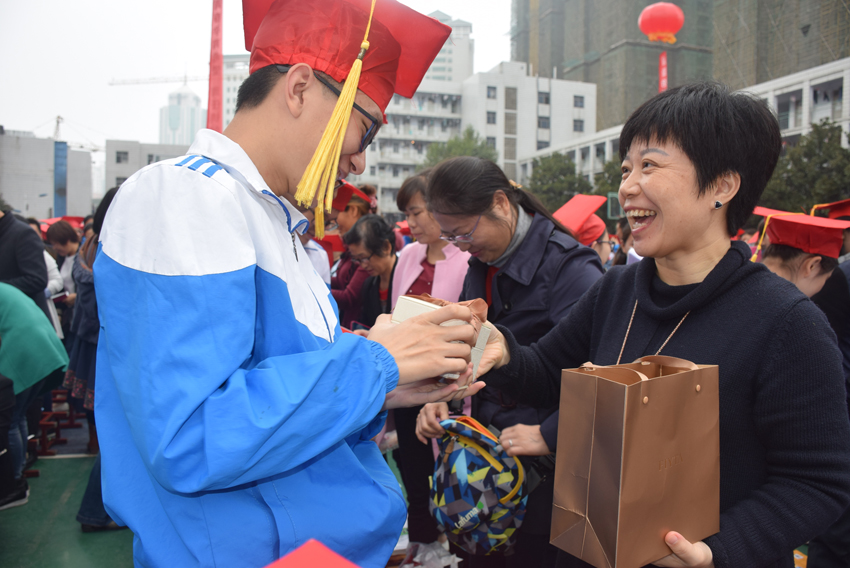對(duì)孩子:感謝你們,也感謝我們自己,正如我們師生在高考路上常常相互感動(dòng)著一樣。無論將來你走到哪里,都要成為有責(zé)任敢于擔(dān)當(dāng)?shù)娜?。敬畏?yīng)該成為三中學(xué)生不可或缺的自身修養(yǎng)和道德境界。母校虐你千萬遍,你待母校如初戀。讓我們一起播撒著愛,播種著微笑,讓我們?nèi)斜粣鄣臍庀h(huán)繞著。
