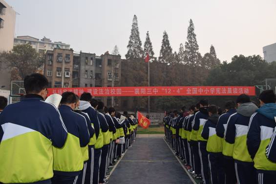 12月4日是中華人民共和國第四個“國家憲法日”,主題是“弘揚憲法精神,建設(shè)法制中國”。襄陽三中隆重舉行憲法晨讀活動,由政教處、團委主辦。活動從莊嚴(yán)的升旗儀式開始,由團委副書記吉芳主持,政教處主任張東領(lǐng)讀,師生齊聲誦讀。學(xué)校通過憲法晨讀活動、法制教育宣傳展板、電子顯示屏等弘揚憲法精神,落實法制教育,增強廣大師生的法律意識,引導(dǎo)師生做“學(xué)法、懂法、知法、護法、守法”的好公民。