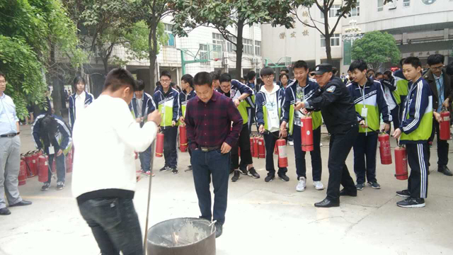 “安全無小事,責(zé)任重于山”。為了落實(shí)省、市教育部門關(guān)于學(xué)校安全工作的要求,增強(qiáng)師生的安全意識,提高師生消防動手能力,4月23日,我校保衛(wèi)科組織高一年級班主任和各寢室長開展消防滅火演練。師生通過反復(fù)演練,學(xué)到了一些消防安全知識,掌握了滅火器的使用要領(lǐng),能在短時間內(nèi)滅掉火源。
