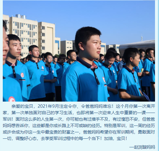 預(yù)祝本次軍訓(xùn)圓滿成功,希望2021級(jí)全體參訓(xùn)學(xué)生在為期一周的軍訓(xùn)中端正態(tài)度、刻苦訓(xùn)練,樹立國(guó)防意識(shí)和愛國(guó)主義情懷,培養(yǎng)吃苦耐勞、堅(jiān)韌不拔的優(yōu)良品質(zhì),爭(zhēng)取在閱兵式上取得良好的成績(jī),鐫刻下高中三年熱血、閃耀的青春記憶。