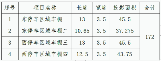 1、采購內(nèi)容:對校園內(nèi)東西兩個區(qū)域建設(shè)四個電動自行車充電所用的停車棚,并負責安裝到位。